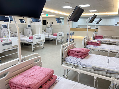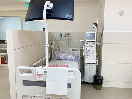 특히 NCU-18 장비는 동양인의 체형에 최적화 되어 있고, 효율적이고 안전한 투석 환경을 제공합니다. 슬림한 디자인으로 병상 간 간격이 넉넉하게 배치되어 쾌적한 환경을 유지할 수 있으며, 환자의 상태를 실시간으로 모니터링 할 수 있는 시스템을 갖추고 있어 의료진이 즉각적으로 반응할 수 있습니다. 또한 모든 침상에 TV가 설치되어 있어 환자분들이 편안한 환경에서 치료받을 수 있습니다.